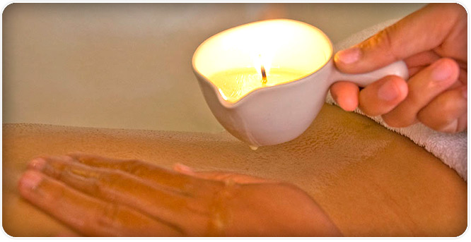 Trata-se de uma massagem corporal realizada com uma vela cujo baixo ponto de fusão permite que a cera se converta num quente e agradável óleo de massagem.